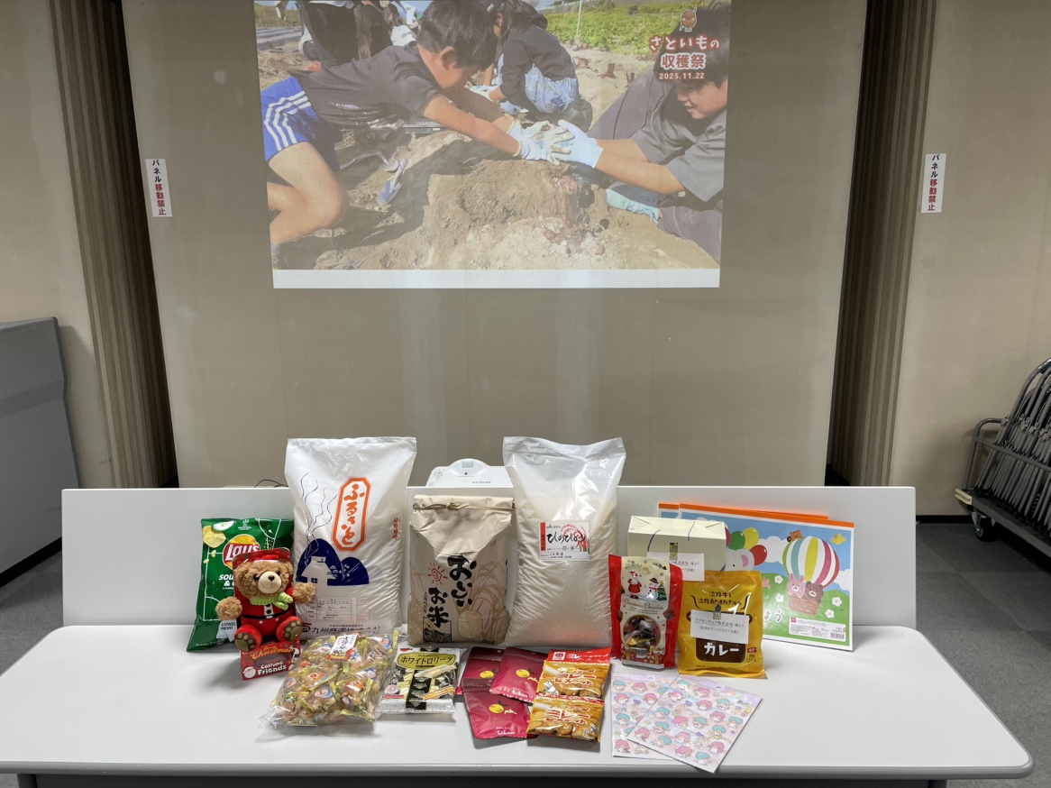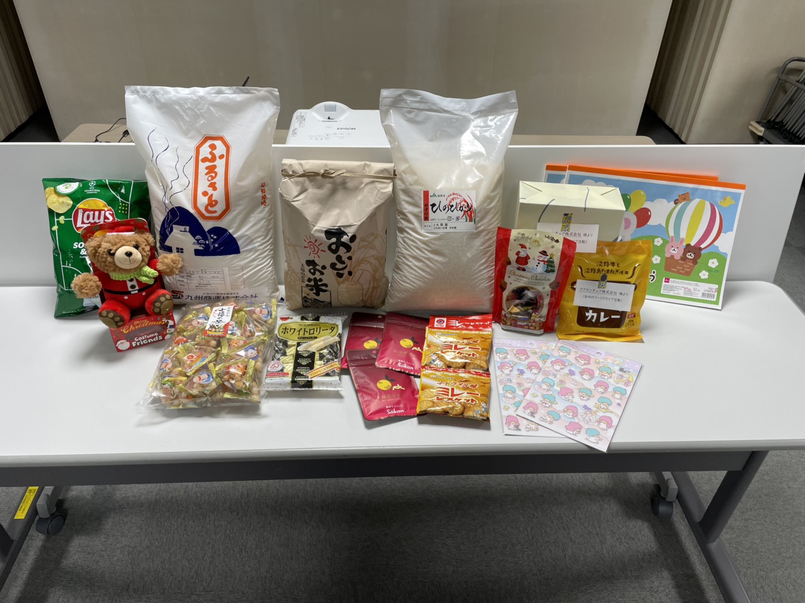 各企業様が持ち寄り、お米やお菓子、雑貨などが集められました。