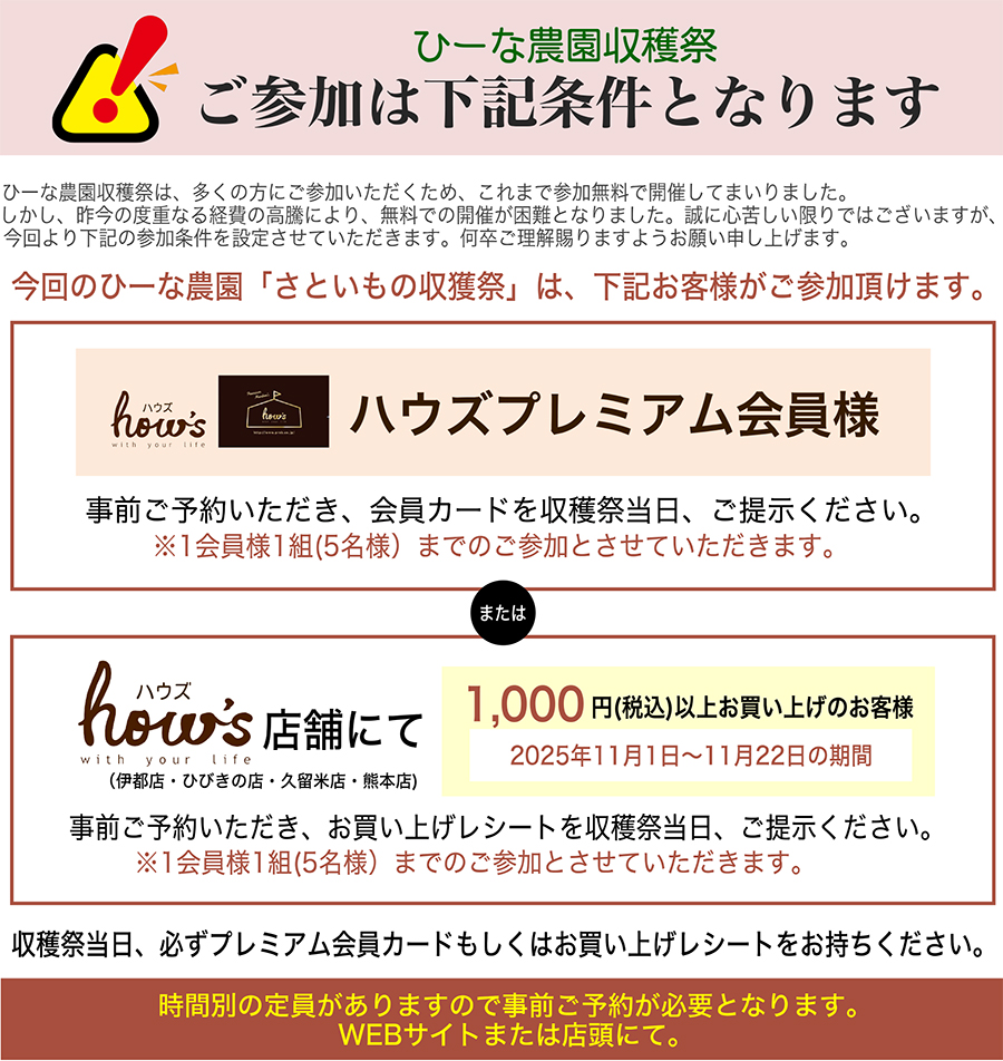 - ひーな農園及び収穫祭時における事故、トラブル等に関しては弊社は一切の責任を負いかねます。