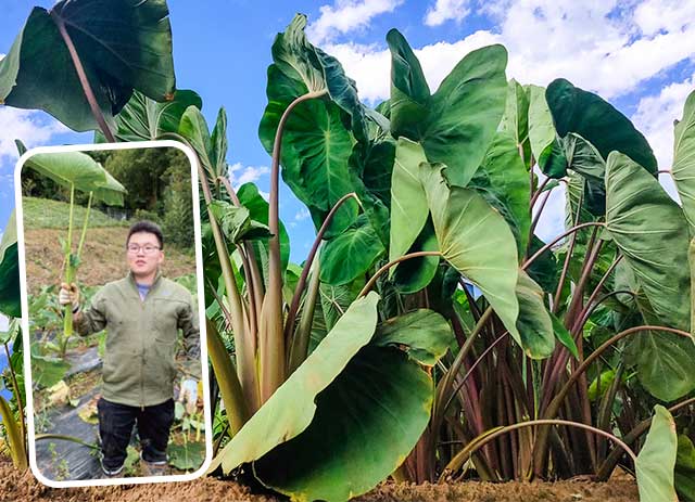 大きな葉が特徴の里芋。里芋は高温多湿を好むため、他の野菜を育てることが難しい場所でも栽培が可能です。地表に芽が出て里芋が日光に当たると「青いも」になり味が落ちてしまうので、しっかりと土寄せすることがポイントとなります。