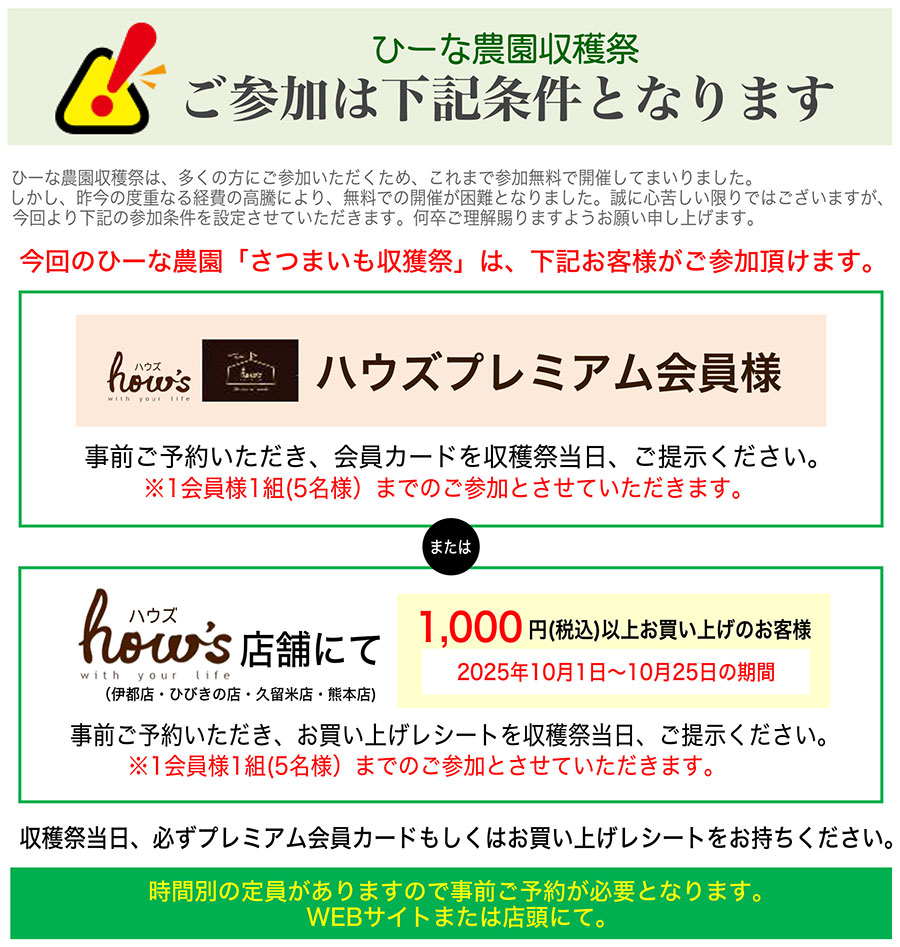 - NEW「さつまいもの収穫祭」のご予約を開始致しました。
